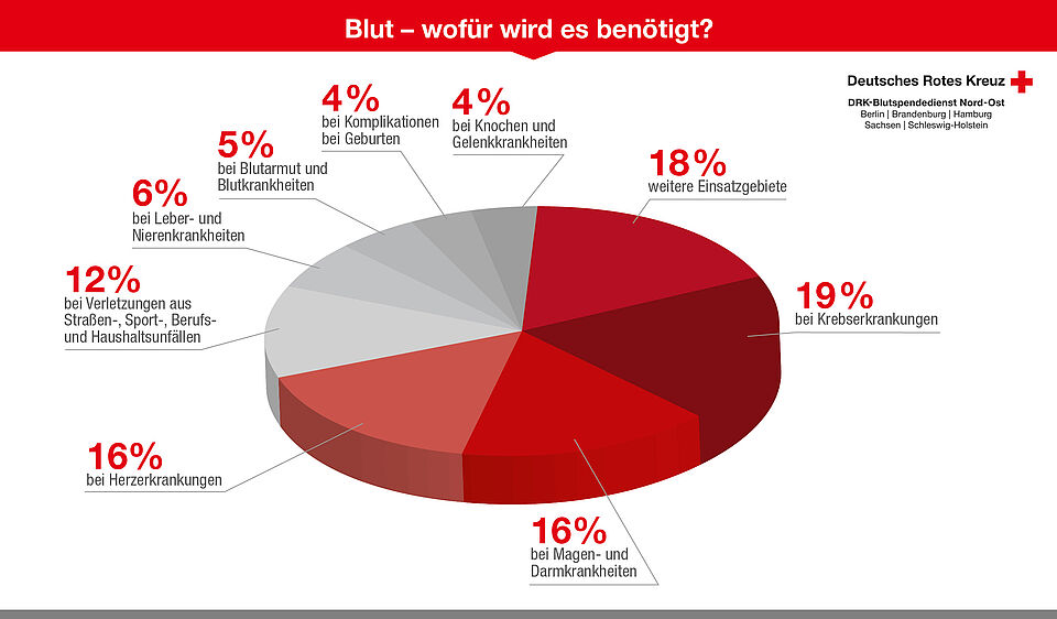 Die eigentliche Blutentnahme nimmt nur rund 5 bis 10 Minuten in Anspruch. Eine Blutspende kann bis zu drei Patienten helfen, da eine Vollblutspende in die Bestandteile Erythrozytenkonzentrat (rote Blutkörperchen), Thrombozytenkonzentrat (Blutplättchen) und Blutplasma aufgetrennt wird. 19% der Blutpräparate werden für Krebspatienten benötigt. Blutpräparate haben nur eine kurze Haltbarkeit von teilweise wenigen Tagen. Um die Patientenversorgung auch über Weihnachten und den Jahreswechsel abzusichern, bietet der DRK-Blutspendedienst Nord-Ost rund um die Weihnachtsfeiertage an einigen Spendeorten Blutspendeaktionen am 2. Weihnachtstag, Freitag, 26.12.2025, und am Samstag, 27.12.2025, an.