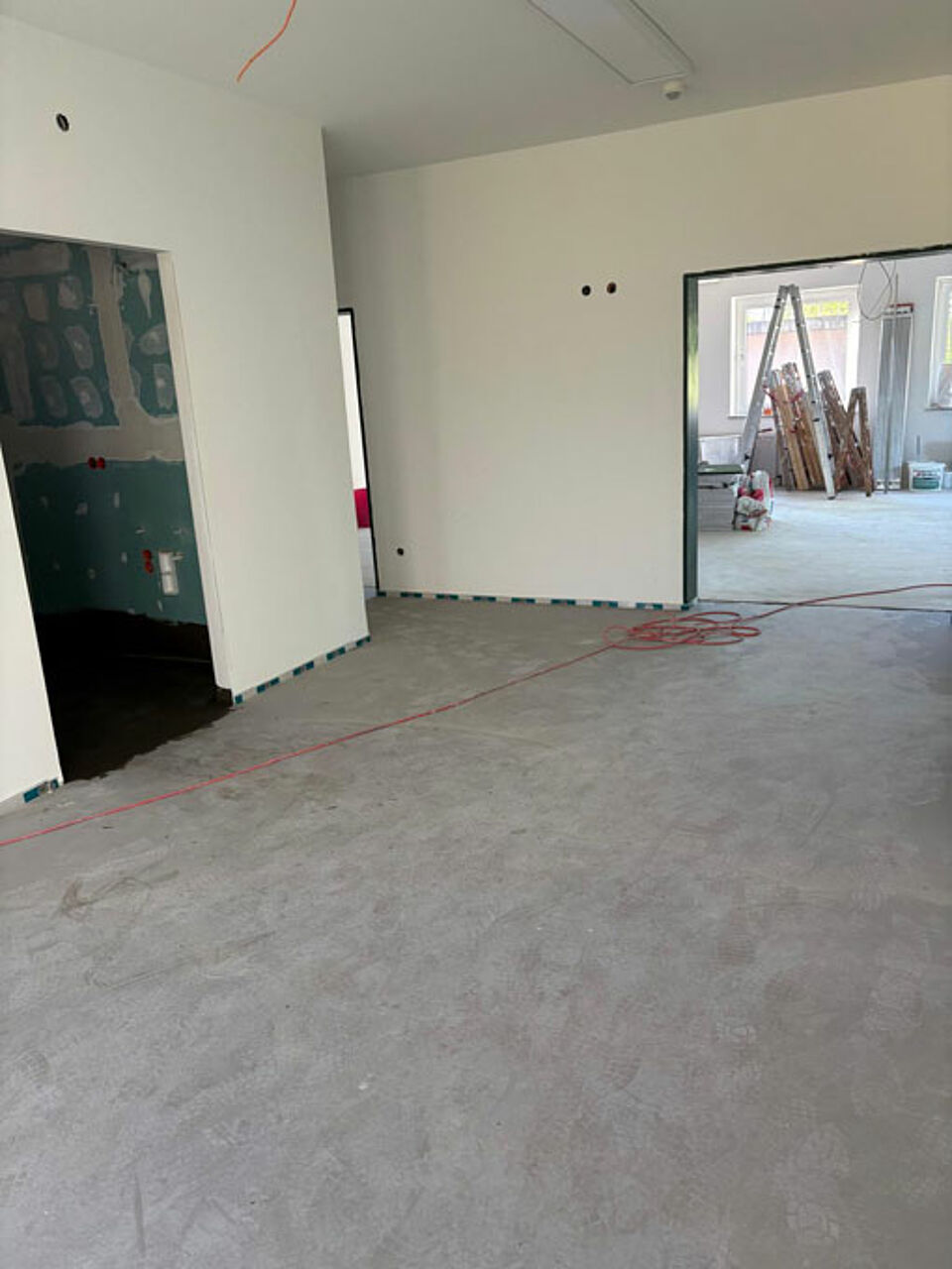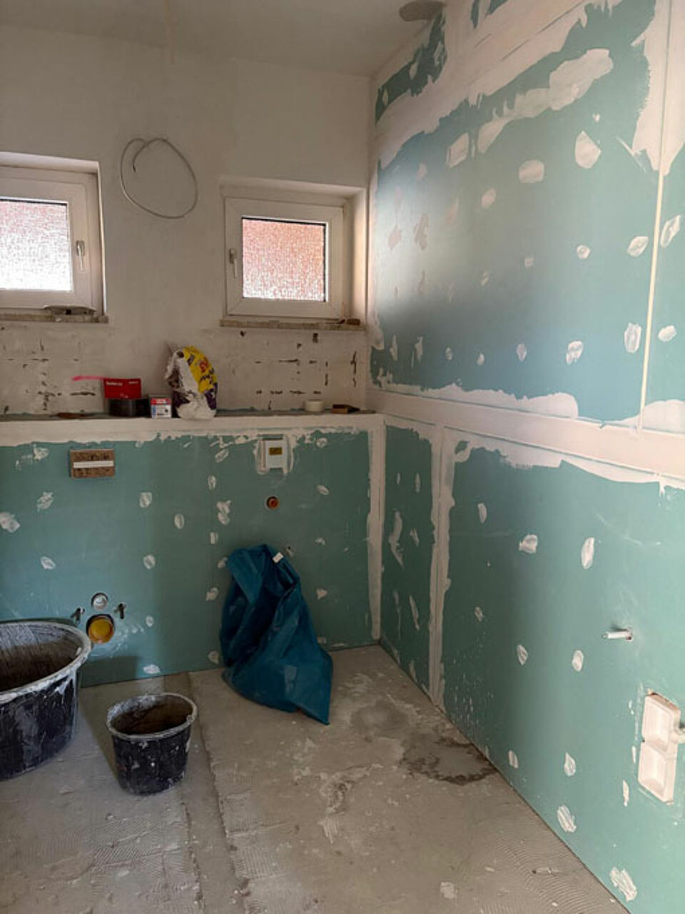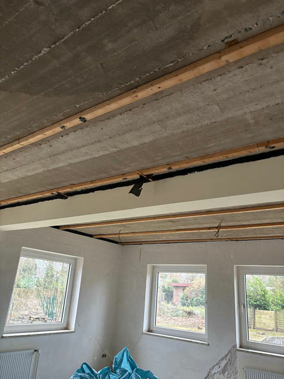 Nach einer umfangreichen Vorbereitungszeit, in der wir die Aufträge für die Arbeiten an lokale Handwerker vergeben konnten, starteten die eigentlichen Arbeiten im März 2025. Vorher räumten die Helfer des DRK OV Reinbek das Haus und lagerten das Mobiliar in der Garage.