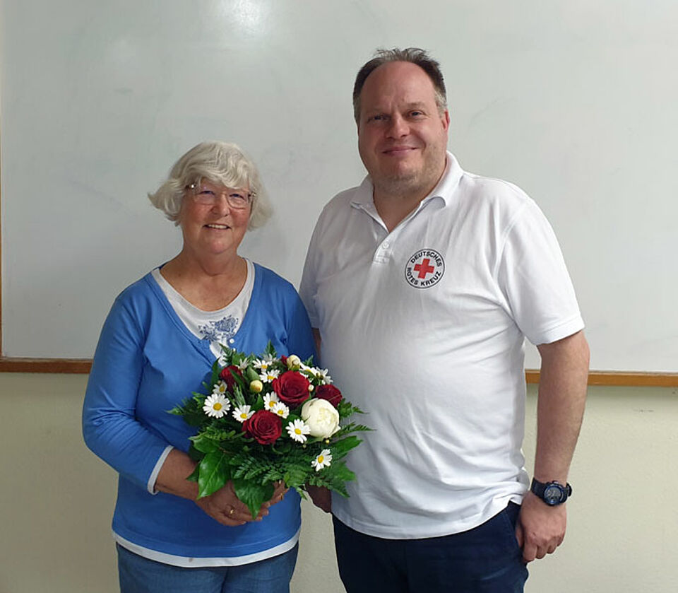 Foto (DRK-Reinbek): Der Vorsitzende Thomas Fleckenstein bedankt sich bei Petra Oberlein für 15 Jahre als stellvertretende Vorsitzende.