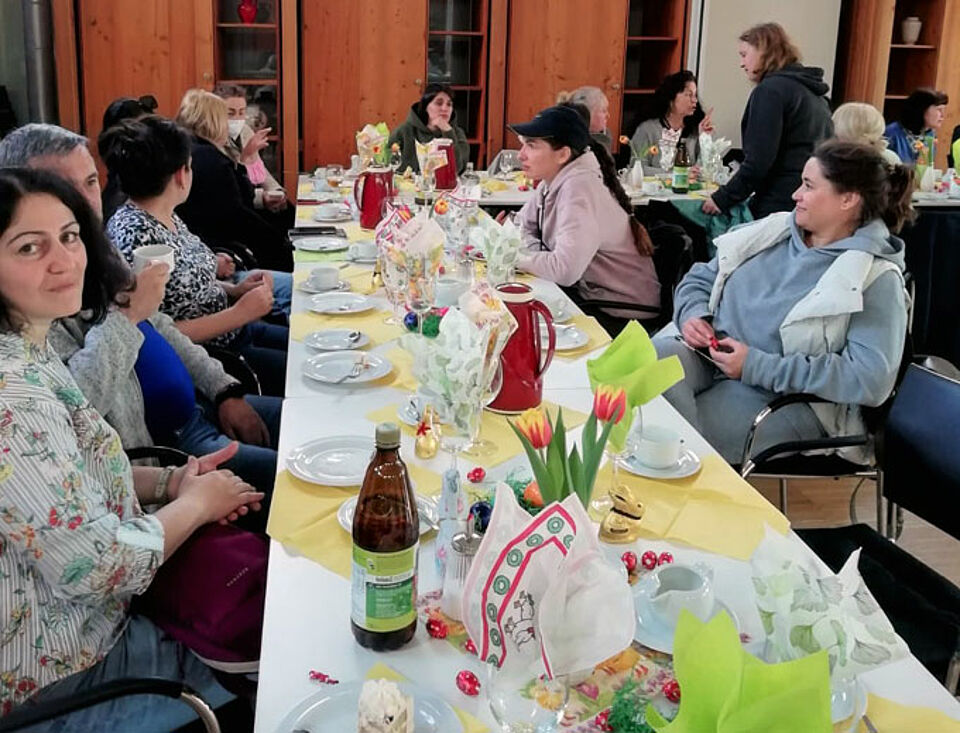 Bereits zum dritten Mal luden die ehrenamtlichen Helferinnen und Helfer der DRK-Reinbek im Jürgen-Rickertsen-Haus am 2. Sonntag im Monat ukrainische Geflüchtete zum gegenseitigen Austausch ein. Mit reichlich Kaffee und Kuchen war für das leibliche Wohl gesorgt. So gestärkt konnte gesungen und getanzt werden. Auch für das nächste Treffen am 14.8.2022 wurden einige Pläne geschmiedet.