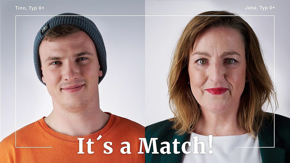 Die bekannte Kampagne „It’s a Match“ des DRK-Blutspendedienstes Nord-Ost ist in eine neue Runde gegangen. Das Besondere an der Neuauflage: Das zentrale Element - die Portraits von jeweils zwei Menschen, die ganz unterschiedliche Typen verkörpern, jedoch durch das starke Band derselben Blutgruppe miteinander verbunden sind - zeigen keine Modelle, sondern Menschen, die mit ihren echten und bewegenden Geschichten noch mehr Blutspender*innen mobilisieren möchten.
