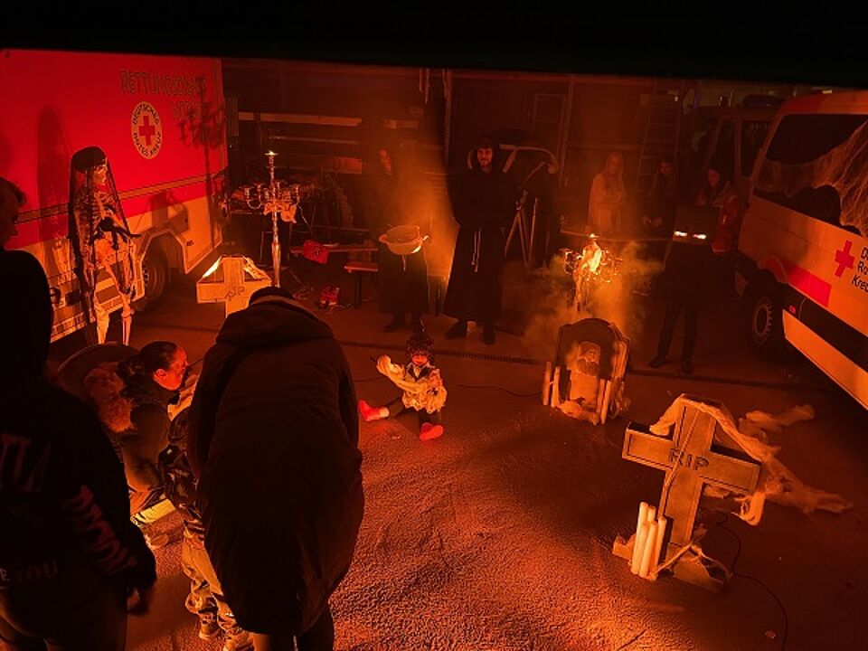 Das Jugendrotkreuz hat die Garage dieses Jahr in einen kleinen Friedhof verwandelt und viele kleine Gäste zum Gruseln empfangen. Mit Grabsteinen, Licht- und Nebeleffekten war die Stimmung perfekt.