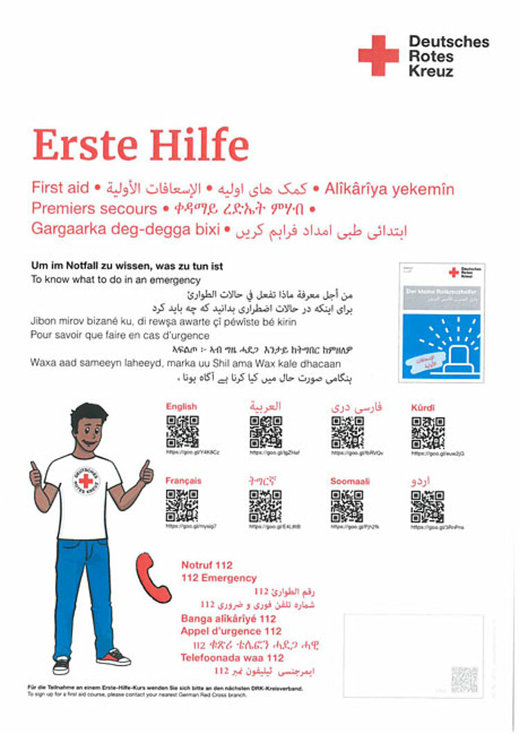 Links zu Erste-Hilfe-Hinweisen in verschiedenen Sprachen